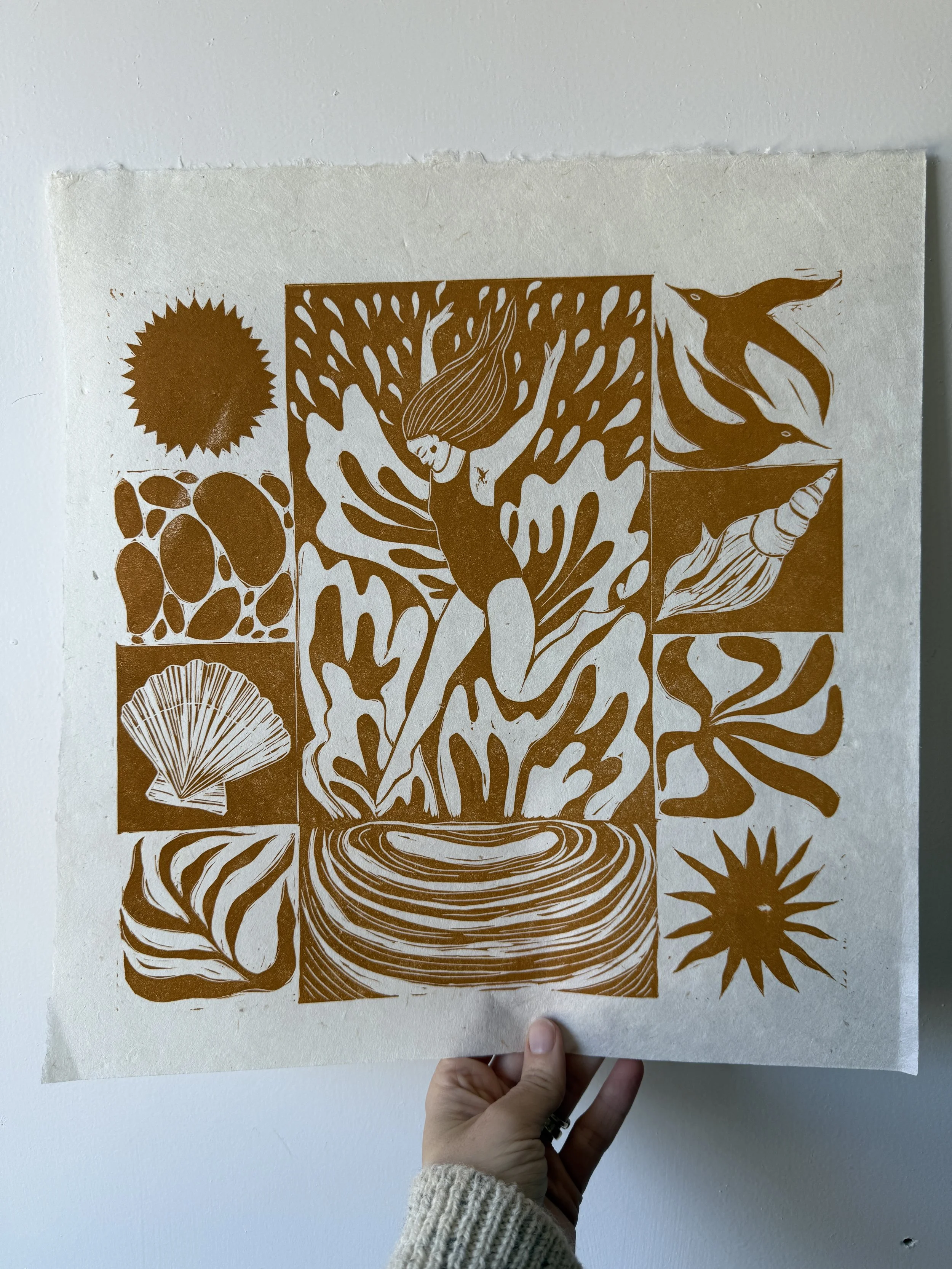 A second of my original limited edition linocut listing. Examples of imperfections that mean this is at a discounted price could be- faded/patchy ink, creases in paper, thumbprint, overinking, misplaced image on paper. Please see photos.