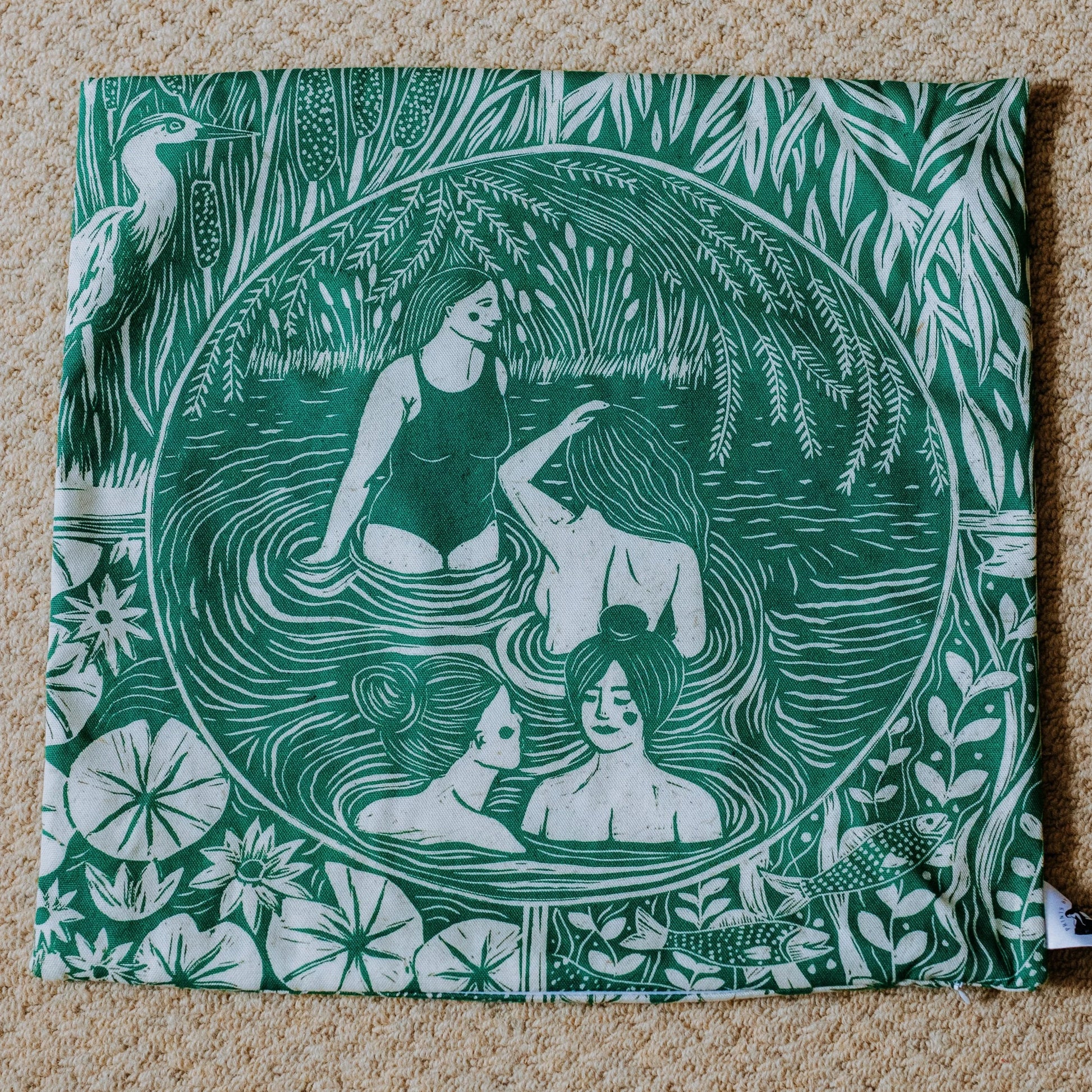 3 of my original linocut designs beautifully printed onto organic unbleached cotton, with a zipper closure.
