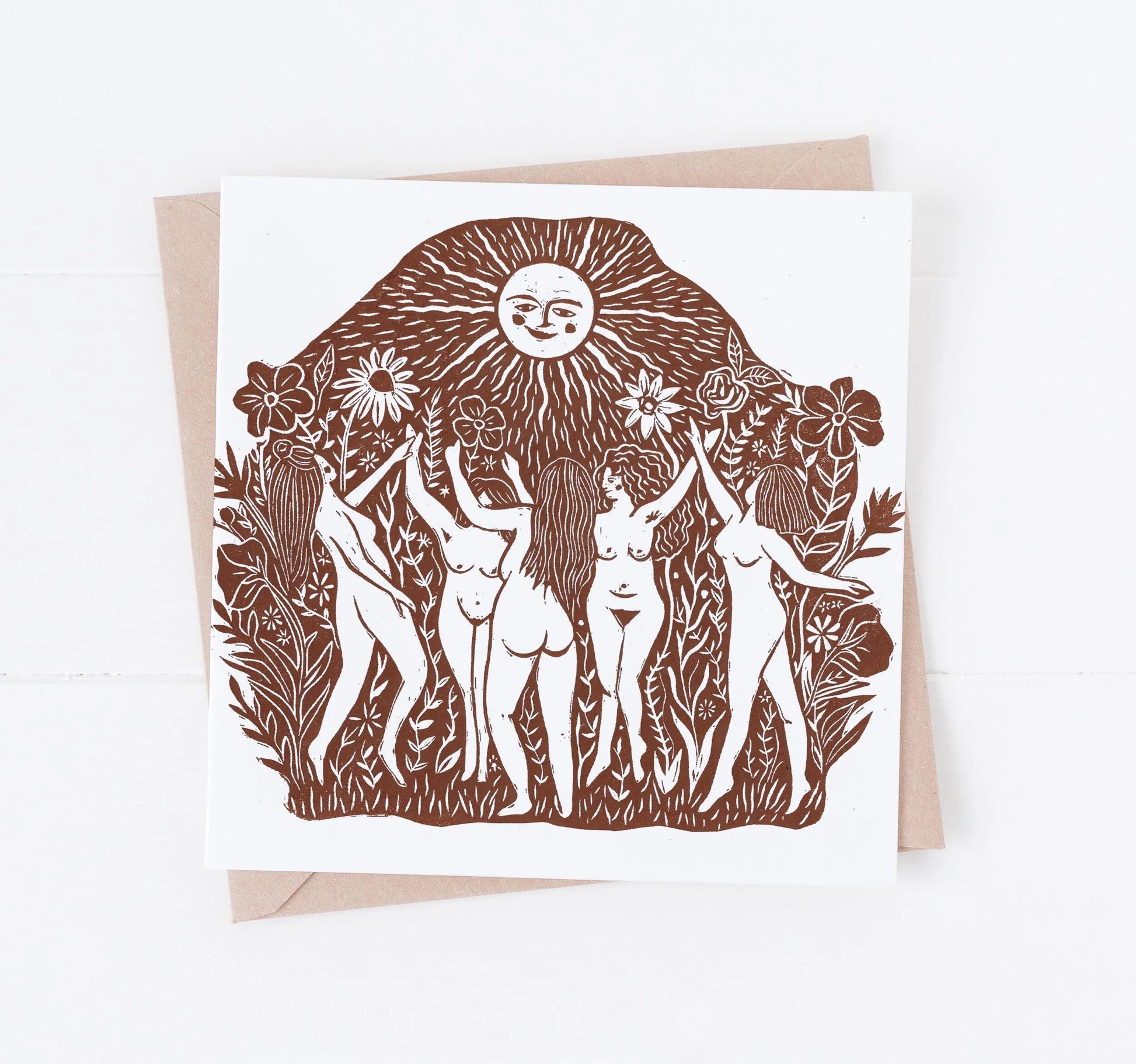 Blank inside with a brown Kraft envelope. Recycled card stock. Square 15cm by 15cm or rectangle 7cm by 5cm