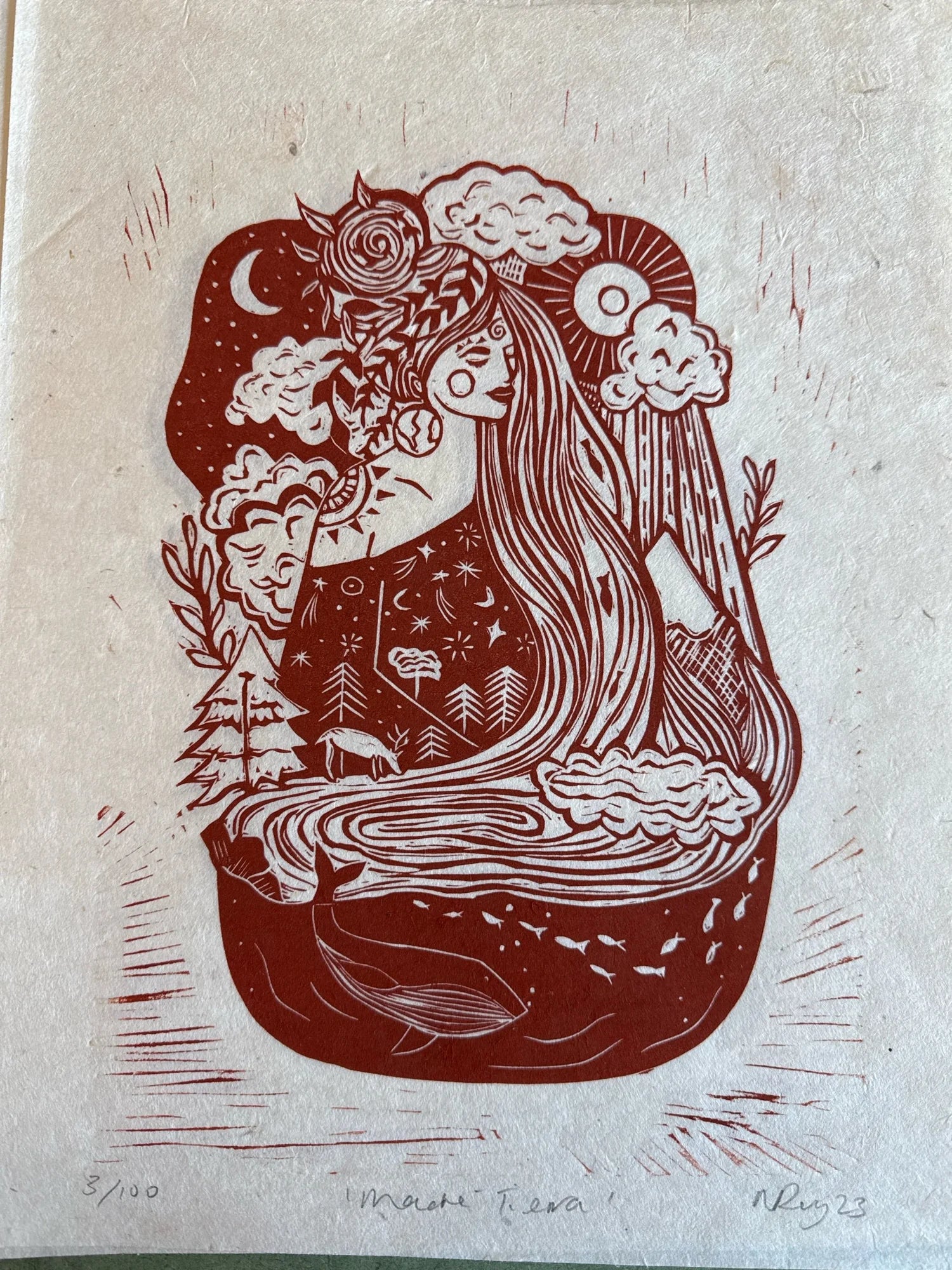 Handmade linocut print.