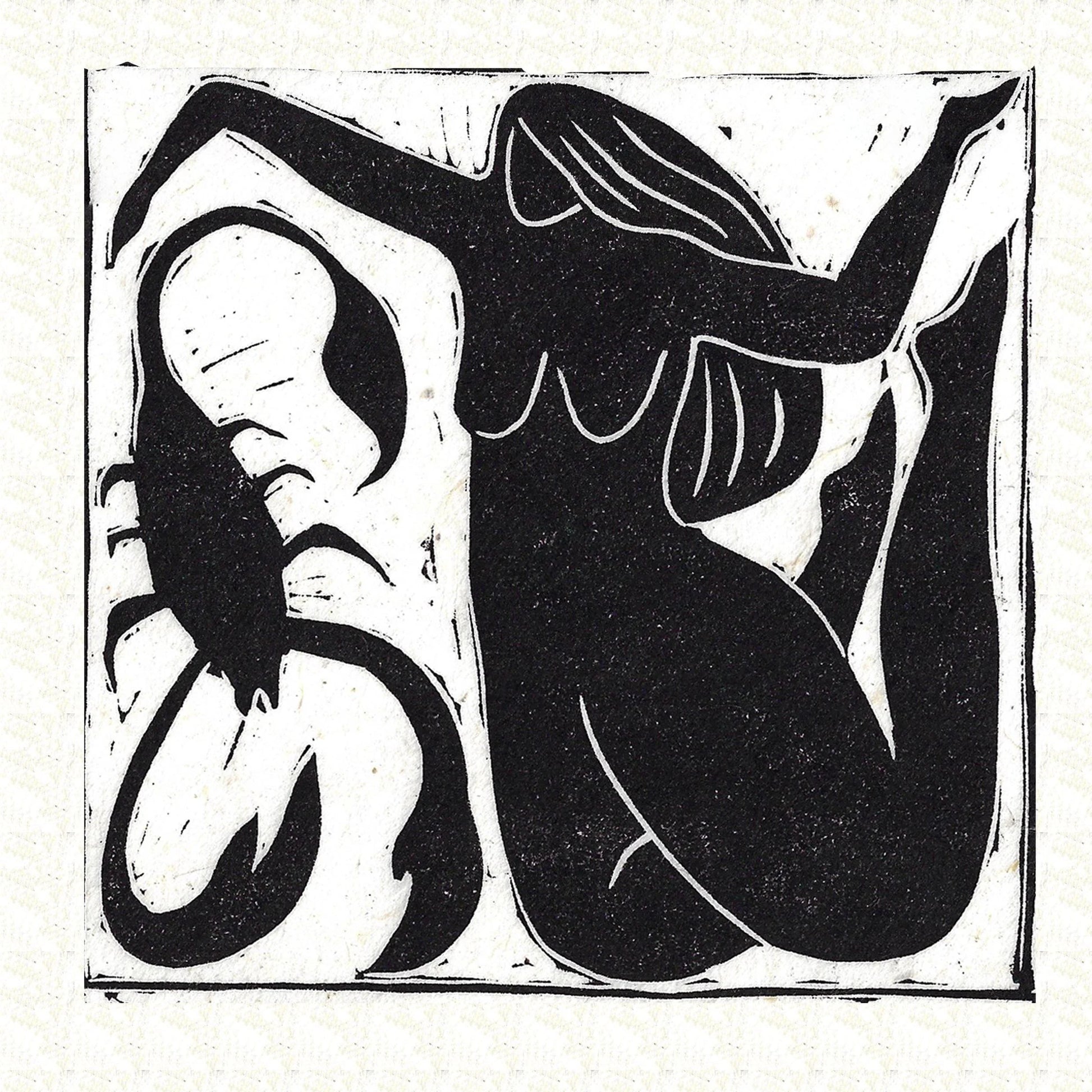 Original tiled linoleum print depicting the signs of the Zodiac. Hand carved and printed using a traditional printing press.